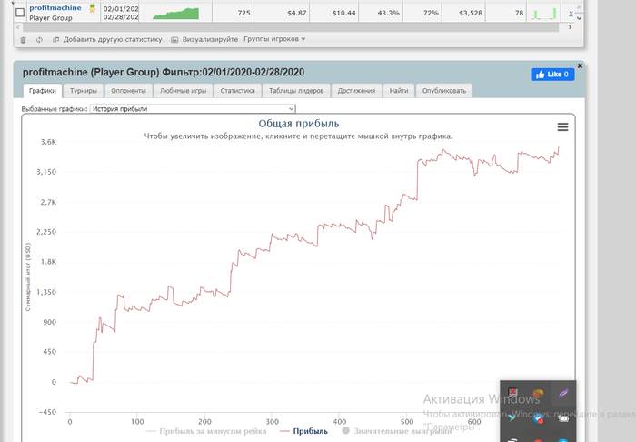 Вот график с Покерка и Пати за февраль, общий профит составил ~3500$, даешь Best month