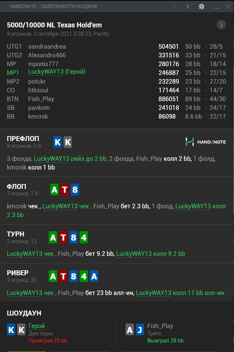 и вот такая на днях была , с КД вколил олын от активного там 84 , ну и две пары с флопа отправили меня спать )