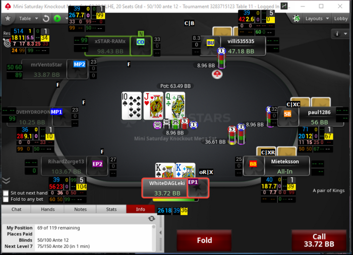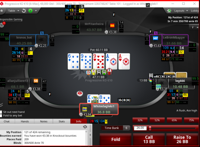 финалка за 5 баксов на 888 против пассивного фиша есть фолд )? или можем пушить на флопе ?