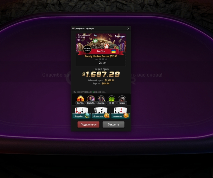 Добавлю строку, сколько всего сыграл турниров, отчет с 16 августа вроде