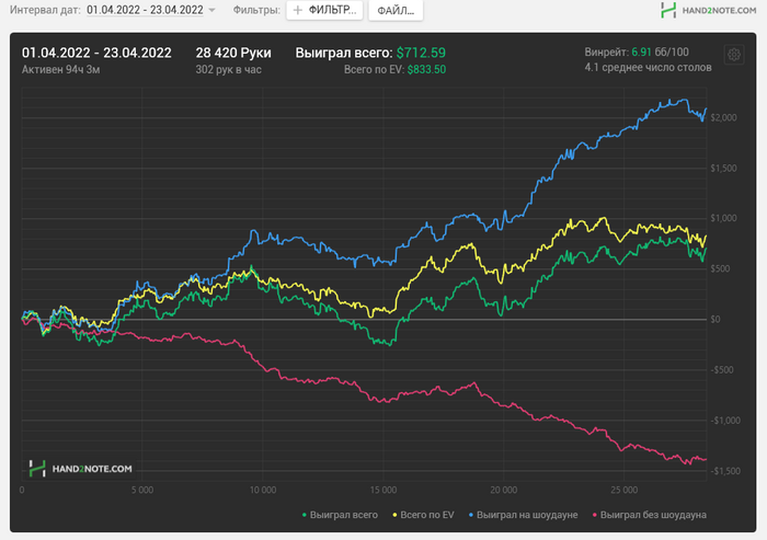 2. Это ответственность перед своими Читателями . Когда я публикую свои результаты, я совершаю меньше ошибок во время игры. Стараюсь подходить к игре более ответственно, осознанно. Не смотрю фильмы во время катки и не слушаю музыку (как было раньше ), ( чаще нажимаю кнопку фолд в пограничных для себя спотах, меньше "отмораживаюсь" и.т.д )