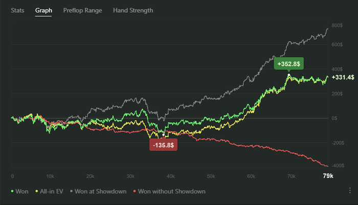 Сложно конечно по началу после перерыва вливаться в покер, но со временем вспоминаю вроде как играть, откатал 79к рук раш нл 10.