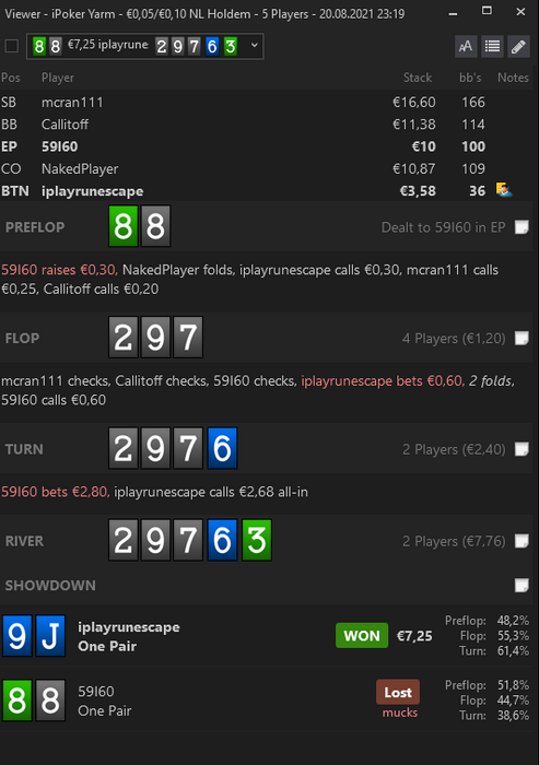 Pend, меня размер рейза смутил. Может, реги высоких лимитах так играют, но здесь или фиш, или фиш с АА, КК, АК. Вот и сбросил.