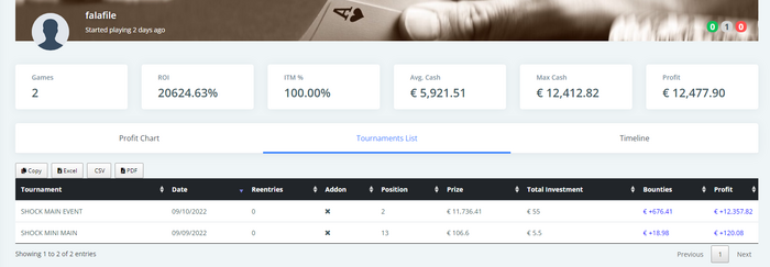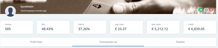 Аккаунт был создан под новогодний мейн ивент, где он сыграл свой первый турнир и занял там 2 место и получил 7.5к евро.