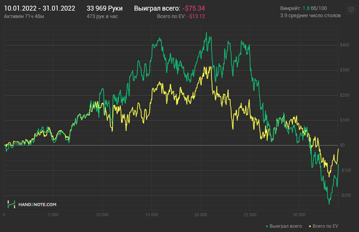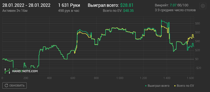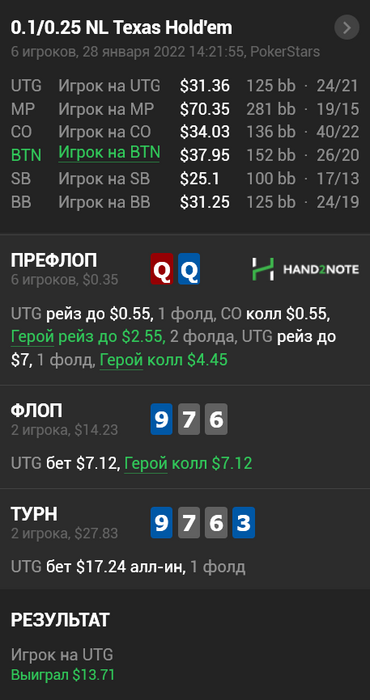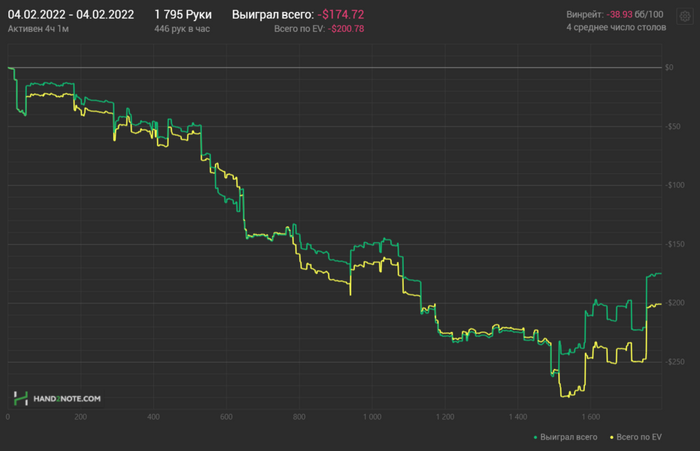Парни, никто не зассоряет блог. Я всегда рад любому обсуждению раздач. И всегда рад любой критике, в какой бы манере она не звучала бы. Если игрок, который играет в плюс, выше лимитом, скажет, что я долбаеб, и за 7 месяцев чему то не научился, то я буду только рад и скажу спасибо. Мои ошибки, я все прекрасно понимаю. По раздаче с AQs я понимаю, что розыгрыш через 4бет и через колл 3бета имеет место быть. В данном случае динамика игры была агрессивной, и опп тоже был агрессивный, и я посчитал на тот момент, что 4бет будет эффективнее и на частых фолдах оппа я смогу здесь заработать. Против тайтового, тут конечно бы я больше склонился бы к коллу 3бета, и оттыгрышу в позиции на постфлопе. Я не буду со своей колокольни, говорить кто прав, а кто нет. Я чисто по своей логике, могу сказать, что не считаю тот или иной плей ошибкой. Давайте жить дружно, мы все варимся в одном котле, и в любом споре рождается истина. Всех обнял)