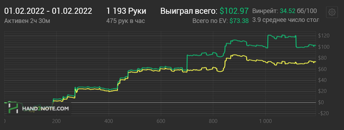 Так как я играю за обычными столами без анте, то получается, что убыточные позы будут только СБ и ББ. Свободные позы, если не играть ни одной руки, то вр на них будет 0бб/100. Значит моя задача заключается в том, чтобы катать свободные позы точно с положительным винрейтом. Блаинды в идеале тоже с положительным, но точно СБ не меньше -50бб/100, а ББ - 100бб/100. Если будет меньше, то соответственно я проигрываю ещё больше, чем обязательная ставка в виде блаинда на данных позициях. Ничего не мешает, играть на свободных позах только премиум руки, но тогда глядя на мою стату все адекватные оппы будут понимать, что я играю только сильный диапазон. Соответственно, я не могу открывать с каждой позиции только АА и КК. Играть согласно ренжам, кончено тоже хороший вариант, потому что они отбалансированы, чтобы соблюдать определённый процент открытия с каждой позиции. Но есть очень большое НО. Понятное дело, что верх диапазона я буду играть в плюс, но оставшаяся часть должна играться тоже нормально. Соответственно, если я понимаю, что какую то руку я не выведу хотя бы в ноль, или в слабый минус, и на дистанции она будет очень плохо играться мной, то думаю что ничего страшного не будет, если я ссужу диапазон открытия на некоторых позициях. И не буду открывать самый низ диапазона на свободных позах, чтобы себе не резать винрейт. На СБ и ББ, как я вижу, уже идёт другая история, здесь против ранних поз открытия мы хотим меньше играть, без хорошего стартера. А уже против кнопки и бвб в широких ренжах, хочется играть больше агрессивнее, против пассивных оппов больше стилить и рестиллить, чтобы повысить свой винрейт. Но опять же делая это разумно.