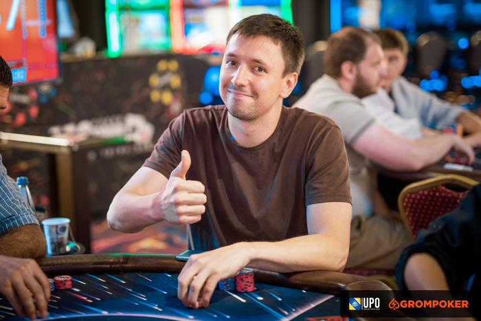 Завтра очень насыщенный день. 117, заряженных на победу, бойцов в 12:00 сядут доигрывать турнир Grompoker Progressive Stack+ Cup. Также завтра стартанет первый день UPO Main Event с байином ₴7,700, гарантированный призовой фонд которого ₴1,300,000. И здесь снова будет биток, советую приезжать на регистрацию пораньше.