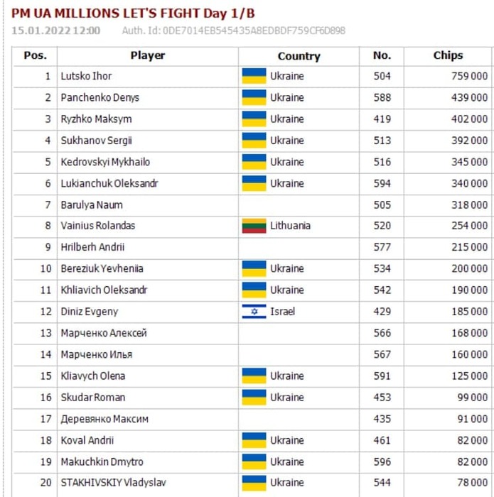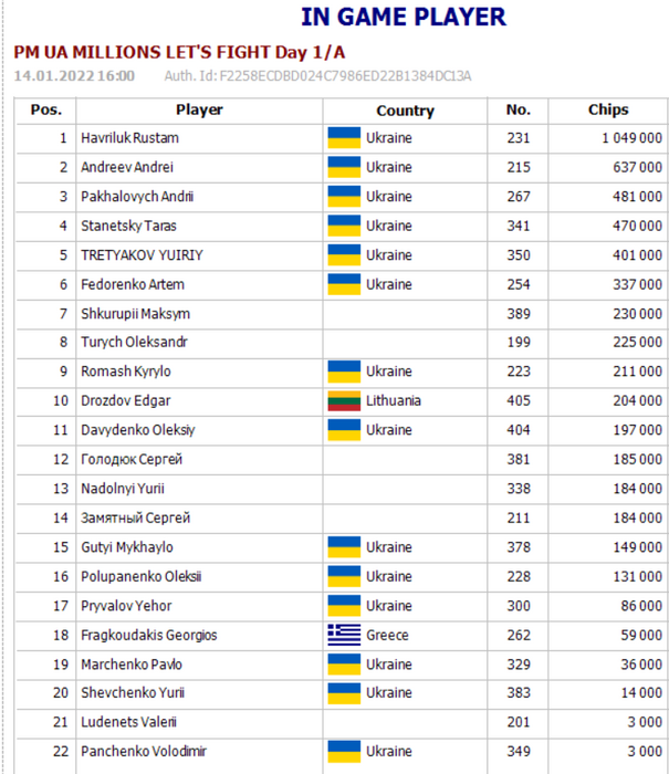 Чипкаунт по итогам флайта 1B PM Millions Lets Fight Super KO