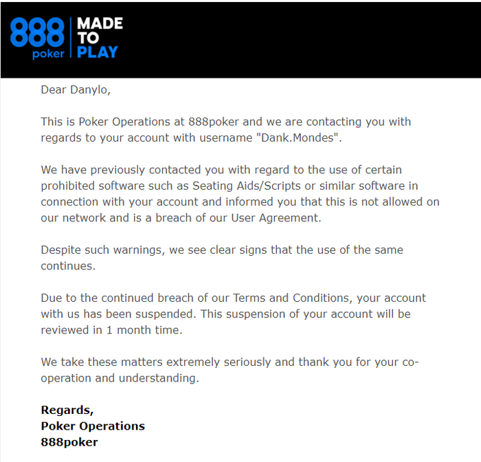 затуп держать в этом руме большие суммы зная их отношение к регам и работу их суппорта. есть пара тем по руму 888 + их представитель, можешь поднять там свой вопрос, но позитивного исхода я бы не ждал. Мне с нихуя так все акции заблочили, у знакомого за пол года вторая проверка верификации, да и вообще мне кажется примеров их ахуевшести хватает.