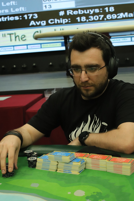 Песин Михаил забирает весь банк и становится чиплидером турнира.