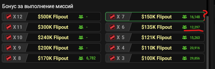 А количество людей в предыдущих флипаутах в итоге больше возможно за счет тех, кто не выполняет все миссии, а делают пару-тройку-несколько.