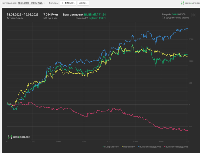 и вроде и красная около того, хотя я не прям слежу за ней, были б деньги. Вот тут другой вопрос, мтт на столько интересная игра, что показывая вот такие винрейты можно минусануть на какое то немалое количество денег, что у меня и произошло. И играя с винрейтами в два раза меньше - хорошо заработать. А еще Винамакс это контора пидорасов. Почти два месяца я туда только и депаю, не понимаю как там возможно выиграть. Последний раз там что то тащил наверное когда утро играл. На пс.ес заработаю, на веник занесу и так по кругу. Даже покерок по сравнению с ним норм рум. Да даже Кинги которые многие недолюбливают на много лучше. Появляются мысли на какое то время поставить его на паузу. Вот такой небольшой тильто отчет)