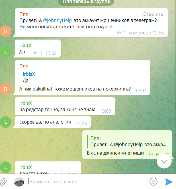 На прямой вопрос в телеграме (как новый потенциальный клиент) johnnyhelp телеграм мошенника? Ответ я не получил а только пиши на джипси в лс после заблокировал! И так же на прямой вопрос в его группе, мошенник или нет. Ответа не было только пиши на джипси. Я был удалён из группы