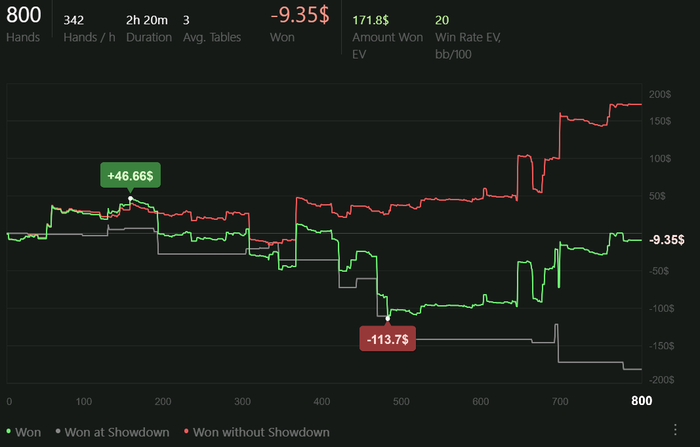 Август стал для меня новым началом, и я вступил в него с уверенностью, что это будет мой лучший месяц за всю карьеру. Это не просто амбиция — это уверенность и готовность к новым высотам. Я поставил перед собой цели: играть качественный покер, поднимать красную линию и провести более 100 часов за месяц, отыграв около 50,000 раздач. Эта уверенность подпитывается моими внутренними изменениями. Я анализирую игру, разрабатываю стратегии и адаптируюсь к каждому оппоненту. Каждая сессия и раздача уникальны, и моя цель — найти оптимальный баланс в каждой ситуации.