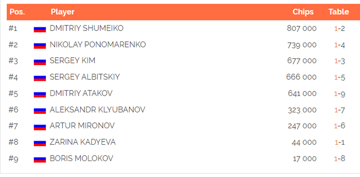 Перерыв в турнире. Чипкаунт на данный момент: