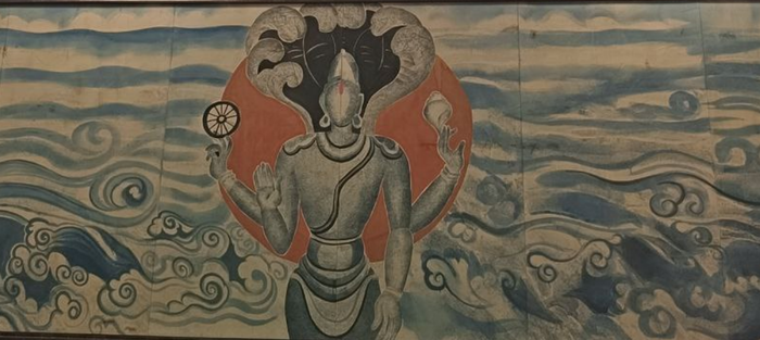 Аэропорт Дели. Змеи над головой символизируют доминацию шизо программ. В правой руке(левое полушарие) колесо Самсары, цикличный круг пиздостраданий. В левой руке(правое полушарие) главенствует маленькая змейка, безобидная будто нам необходима, будто наш друг. Этой змейкой рулят более шизоидные мощные змеи, наши "демоны", шизо программы которые отравляют нам жизнь. Круг солнца позади нас, змеи его затмевают. Про круг позже. Здесь демонстрируется превосходство програм нам нами, мы лишь марионетка, хотя нам и кажется что мы свободны. Это наши инстинктивные программы, которые берут над нами верх. Попробую по короче.