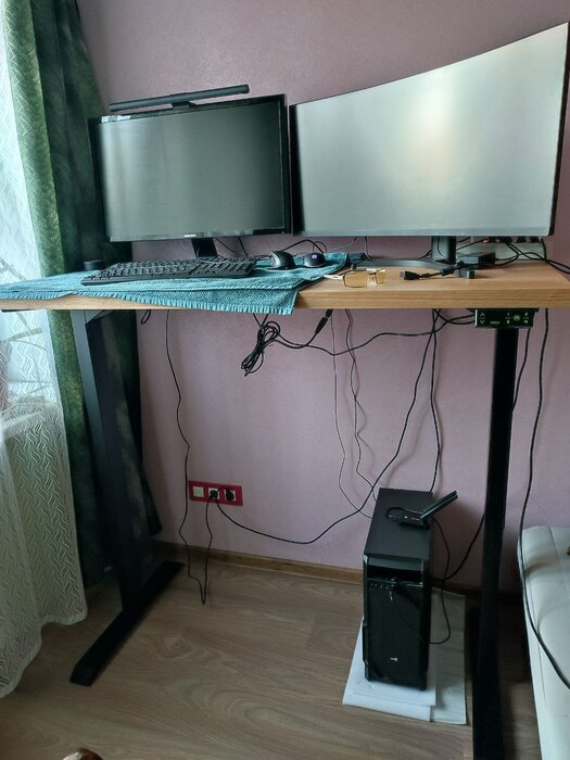 Из минусов блогер сказал, что стол немного неустойчив в верхнем положении. Получается, что стол стоит на 2-х рамах с моторами, а не на целиковых боковых стенках. Действительно в верхнем положении может подрагивать монитор от активного движения. И даже в сидячем положении, если активно водить рукой по столу с мышкой, монитор может чуть подрагивать.