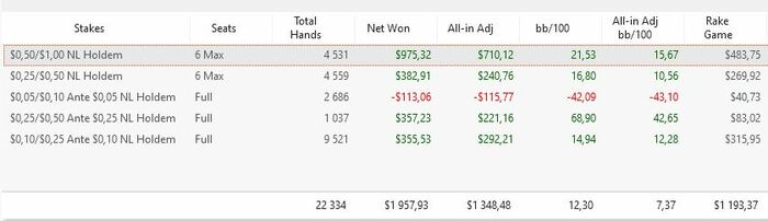 Из интересного: Приобрёл курс Элвина Лау (125$) благо можно было рассчитаться за него внутри покеррума. Посмотрел пока процентов 10, но уже точно отбил потраченные 125$. Оч много полезной информации на еденицу времени. Однозначно рекомендую к просмотру. Думаю мб и красную получится поднять в плюс после просмотра (пока она идет параллельно)