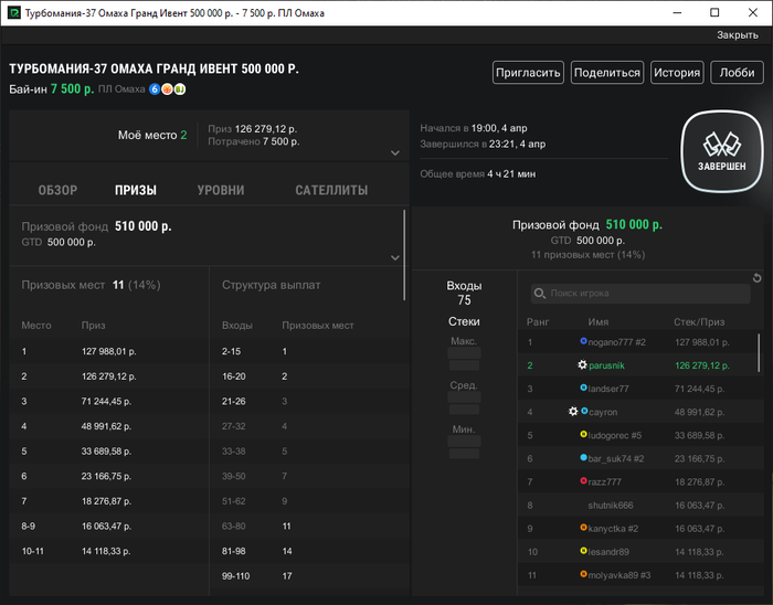 Турниров сыграно всего ~ 32613