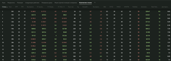 Понятно, что выборка для такого стата маленькая. Но как будто реально когда я играю 6-9 столов, то результаты лучше, ибо я все-равно хочу на ВР играть, а РБ как приятный и побочный бонус воспринимаю.