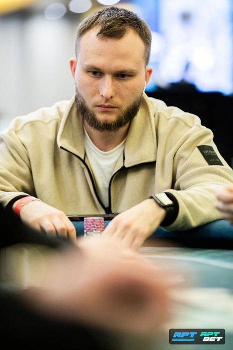 Богдан Комаров сначала проиграл небольшое выставление с в Никиты Полякова. Потом смог удвоиться, но в итоге выбил его Игорь Халейко > , Игорь попал в девятку.