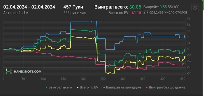 На графике четко виден приход писца))) Одновременно, подчеркиваю -одновременно на трех столах начинается экшен и я со своей жабой не успеваю отслеживать ( не пойму никак -это или я тормоз или время на PS во время раздач ускоряется ( согласно теории квантовой мех-ки😆))))