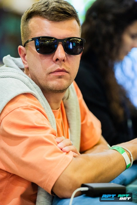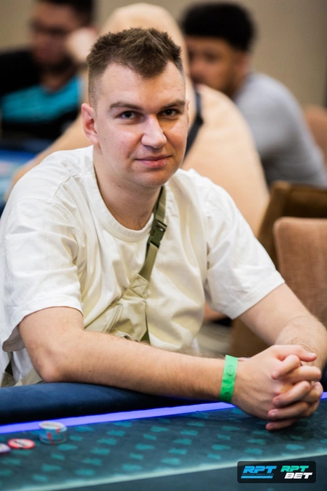 Следом за Яной с этого стола ушел Дмитрий Севрюков. Тоже столкнулся с Кириллом Авдюниным, правда префлоп и на совсем короткий стек.