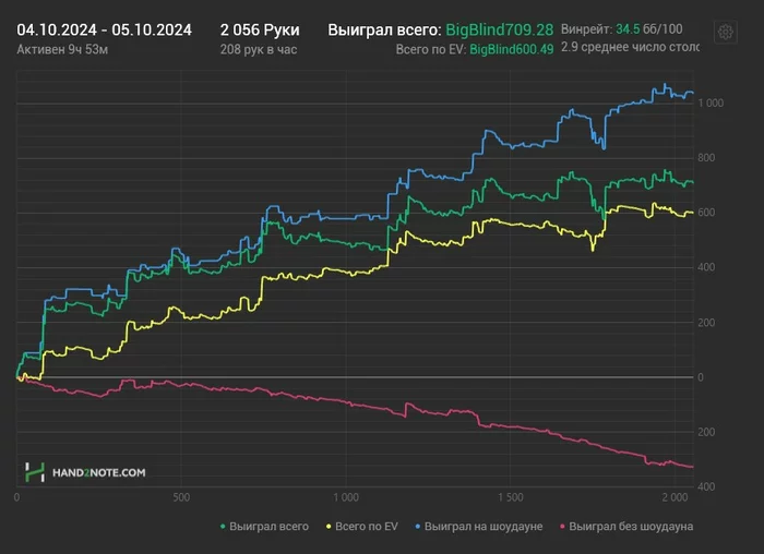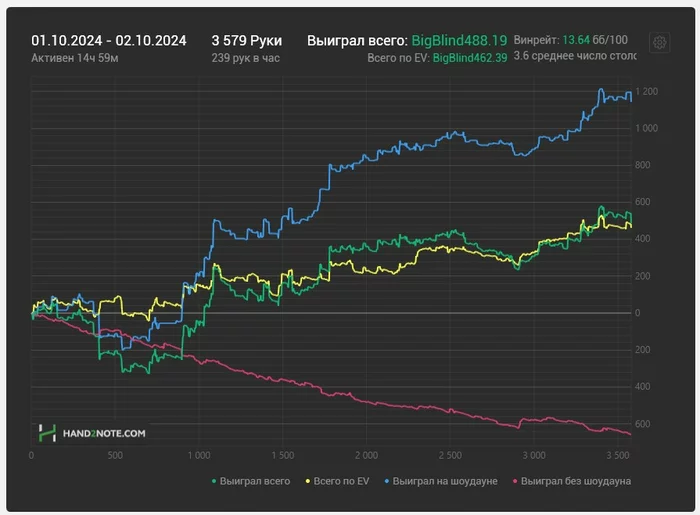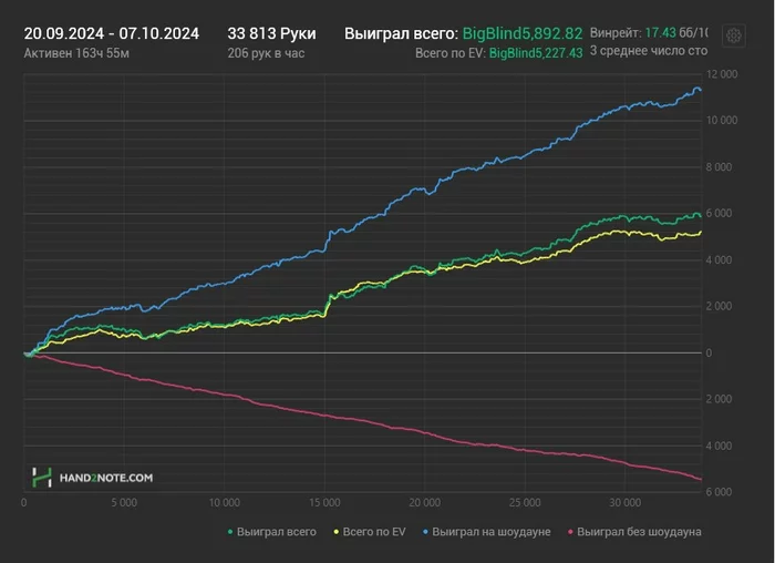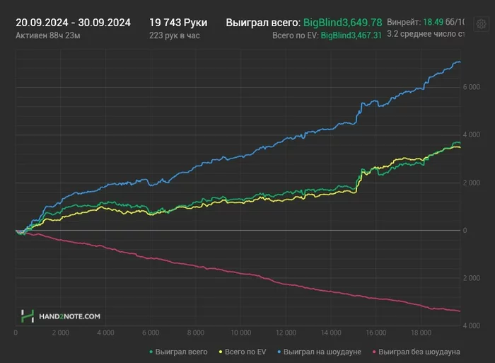 Ещё... может кому интересно будет посмотреть на графику отдельно по румам, но лучше я это покажу в конце октября, когда наберется достаточное количество рук. Пока на каждый рум от 3-5к рук - бессмысленно такое показать.