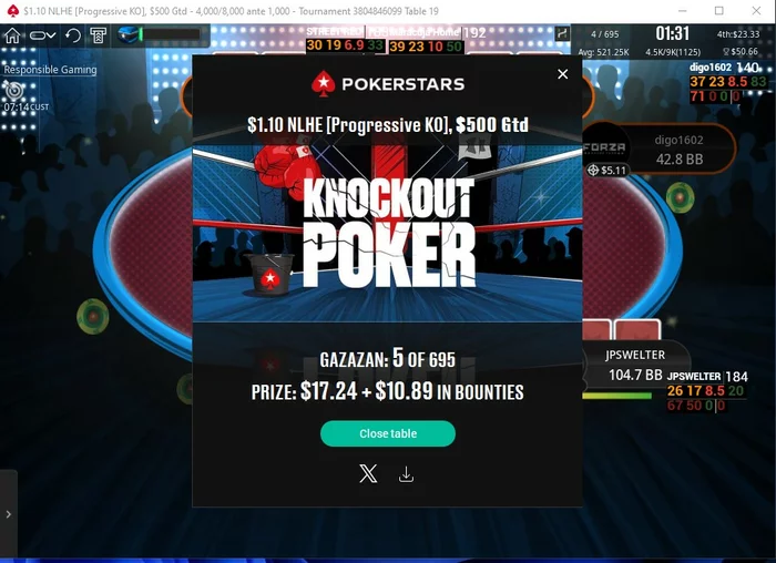 Лучше всего игра складывается на 888 и PS. Хуже всего - сами знаете где. Своей игрой я доволен, даже несмотря на фолд с АК, забыли про это)