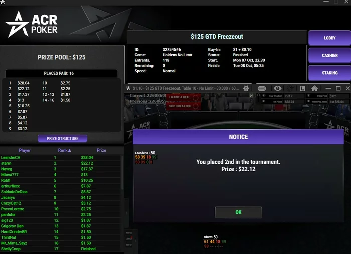 Микролимитчик в ударе! Вчерашняя сессия прошла успешно - дежавю. Неделю назад в этих же турнирах снова занял вторые места. В нокауте шансов на победу в хедз апе не было... у португальца было 100бб против моих 10бб.