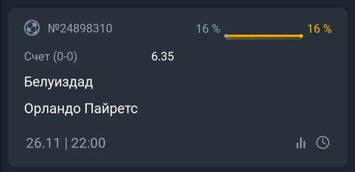Думаю хрень какая то, потом смотрю кф начинает падать постепенно, вобщем на немного решил залезть перед самым матчем