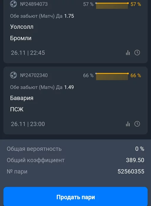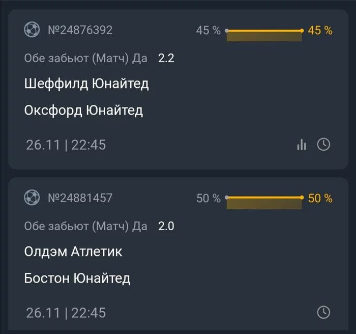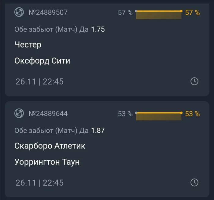 Вобщем успел три ставки мелочью взять, п.1 кф. 21, п.1 в матче с учётом ОТ кф. 10 и ничья кф.10