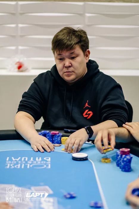Lashkia Giorgi открылся с HJ 2,4k, Zhakupov Amir на SB колл, Cherevatyi Gleb на BB тоже колл.