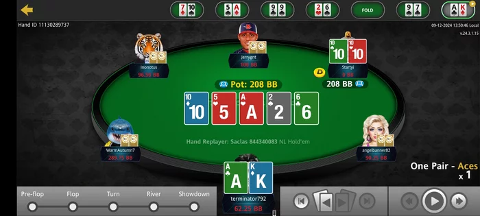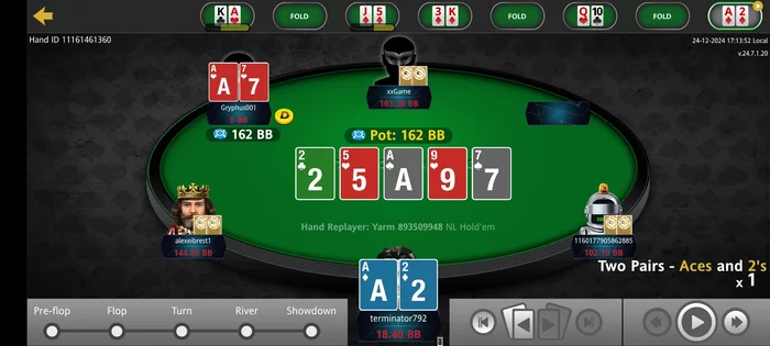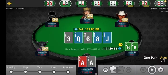 Здесь тоже оллин он поставил на флопе, полстава