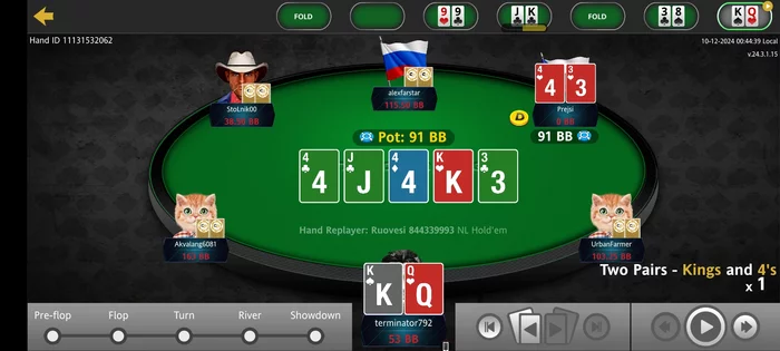 Всем привет, странная ссесия, первый час переезжают при любых картах и ранаутах, а потом ты переезжаешь, странный ГСЧ, не находите владелец рума? Замазывают специально, что бы я никуда не ушел, а Рейк месил, рыба нахуй вообще отмороженая, оллины на ровном месте кидает, ебать я карты скидываю, потом мультивей посмотрел, ебать там говнище, но только не со мной, со мной оллин с натсами у рыб, прям на флоп на тебе Вася стрит разьеби его, твари уебищные, я Вас найду всех, переебу всем нахуй, скоты. Здесь оллин на мой 3 Бет полетел, я уже просто кольнул ибо раз 5 переехали до этого, хуже уже не будет, дак эта сука, меня на флопе переехала, мразь