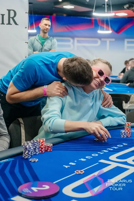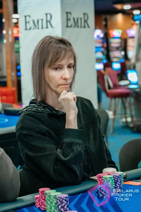 В итоге Елена устояла со старшей рукой и выбралась в чиплидеры со стеком 5.5 млн. У Вадима Матюка осталось 2 млн...