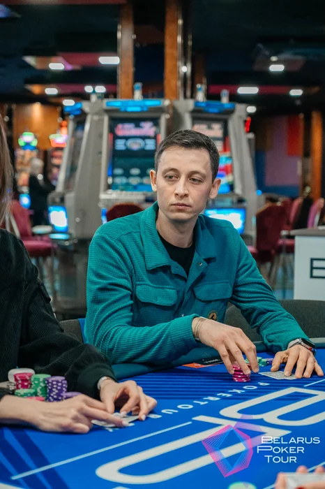 Тимур Камалов сыграл сквиз-пуш 880к с большого блайнда в лимп Вадима Матюка (BU) и колл Елены Яковлевой (SB). Удвоился с в , собрав две пары: .