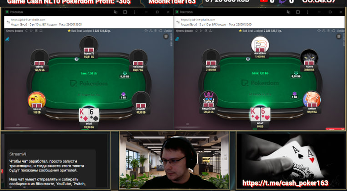 2. Прикупил обновы для стрима, но твич заблочили-видимо карма). В любом случае рад видеть каждого, не пропускайте трансляции заходите на https://kick.com/cash-poker