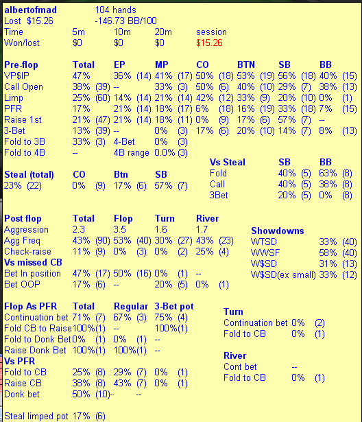 а результат,но он похоже просто для того чтоб полность не упала твое уменее играть,ведь здесь ты сам сказал тупо покарте, тоесть и не думал,это говорит о том что думать нажно еще научится чтоб ограть плюсов несколько столов
