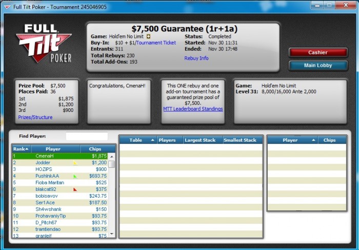 20.00 The Big 22$[50K Gtd] 10 500 за первое 2тэйбл лефт 7часов