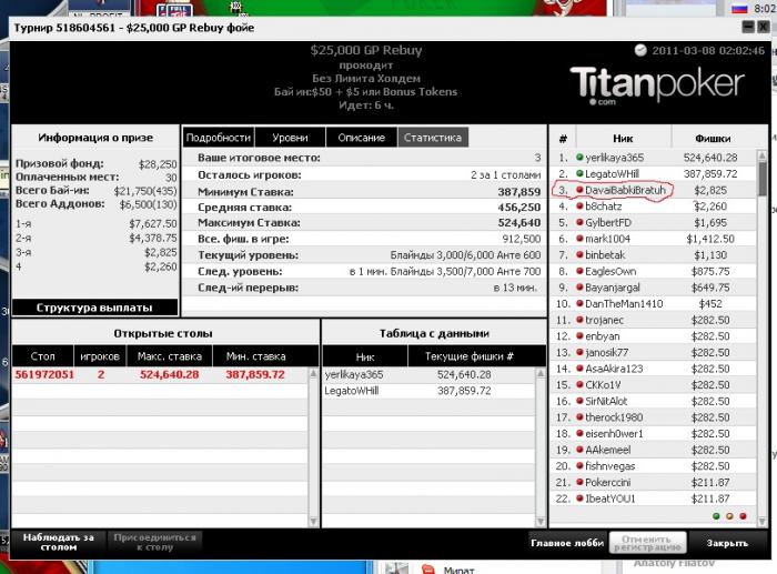 Франк, спасиб, с AJ получилось не хорошо конечно, Т9 пуш нормальный вроде, могу запостить че к чему, если что) дядя там что-то типа 25/21/12 играл, причем нагружать с утюга не стеснялся. следил за тобой с ТОП 45, гг. Хотелось конечно, тебя на финалке видеть, грамотный постер уж очень ты:)