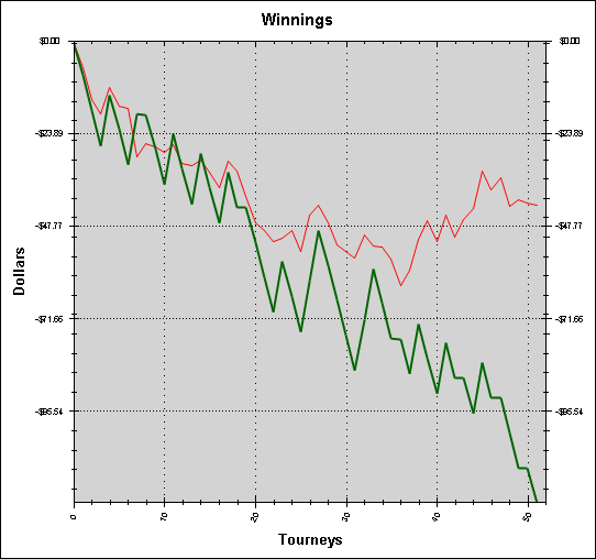 Такая муть творится в пяти румах, так что no escape :) Можно попробовать поиграть во что-нибудь медленное, где дисперсия не такая злая сука, как в турбинках. И еще можно попробовать поиграть действительно много (я вижу среди текущих читателей Narkotiks'а, вот как он) по 600-1000 туриков в месяц. Тогда дисперсия, по-любому, отступит и реальный ROI начнет вырисовываться. Пока иду по второму пути, играя много, но всякую мелочь.