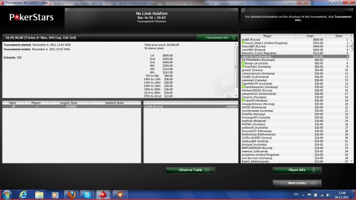 Poker Stars $5.00+$0.50 No Limit Hold'em Tournament - t80/t160 Blinds - 2 players - View hand 1479258
