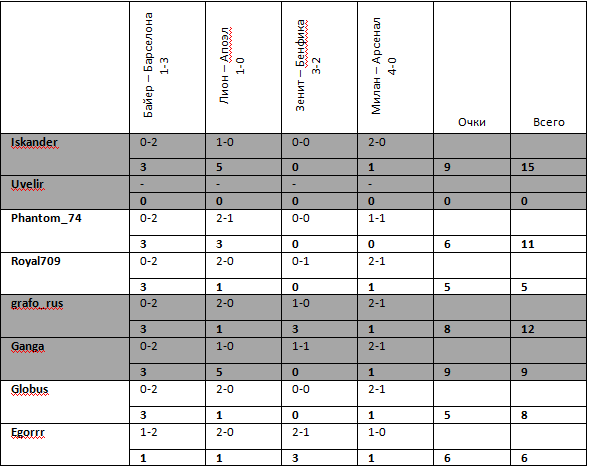* - в скобках указаны очки с которыми участники подошли к 1/8 финала.