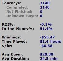 Не смог уснуть. Много кофе выпил. Сел, еще поиграл. Наверное я снгшник, уникальный своей шизанутостью... Какой нормальный человек, имея банкролл для снг по 60-100 будет миксовать лимиты от 15 до 200, да еще вот с такими результатами?