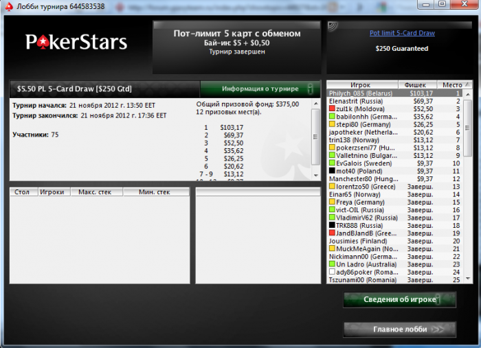 Tournament started 2012/11/29 12:50:00 EET [2012/11/29 5:50:00 ET]
