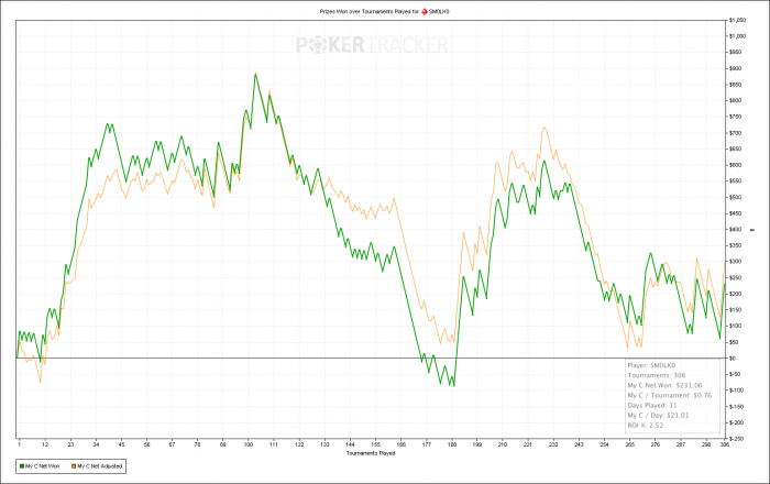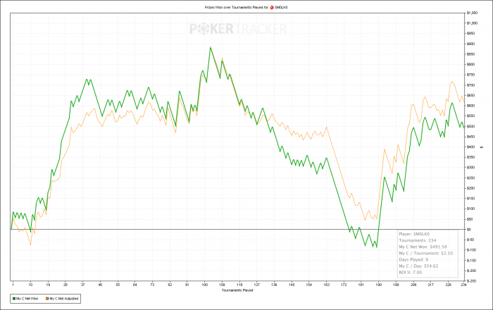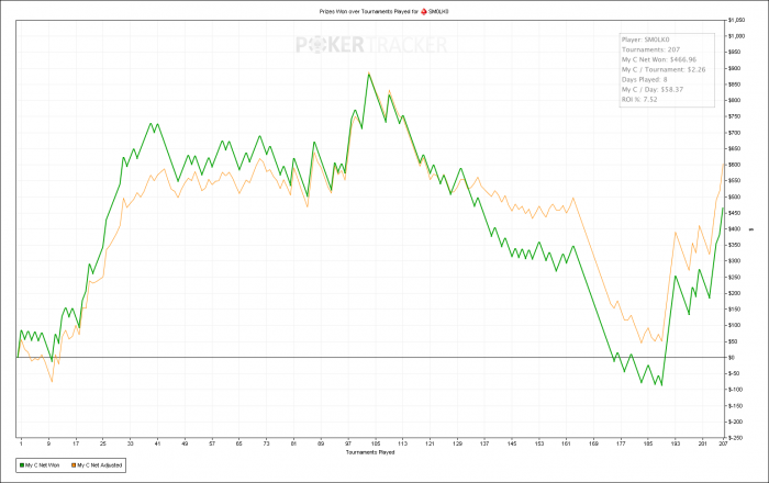 candonga на 30-м лимите нит. Стал открывать 40-50% рук с СБ, и 30% разыгрывает на ББ. В пушфолде пихал 25%, да даже меньше наверно. Это просто смешалось со старой статой. Зато свои старые трюки и лудо коллы исполняет так же.