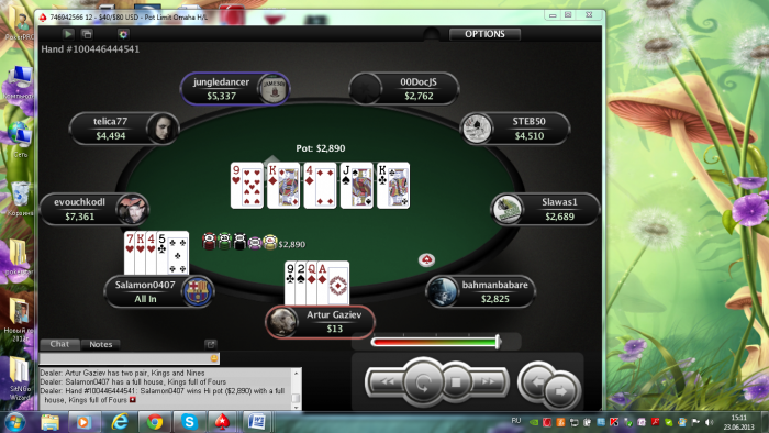 ArturGaziev @ 24.6.2013 19.57 в кассе. За день +9.57. Похоже я сраный микролимитчик, опять придется подниматься с нуля практически. План тот же, но когда станет 65 буду играть гиперы омаху хай-лоу 6 макс.