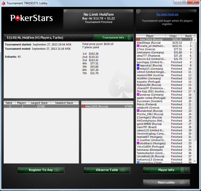 Привет! Слежу за тобой, отличная игра.Желаю тебе хороших доездов в мтт. GG Хотелось бы спросить, ты не плохо играешь мтт турики, не пробывал попробывать 1,5-2к турниров покатать чисто мтт без мтснг? Я думаю у тебя хорошие шансы бить их с роем 50+%, а сдесь ожидание выше будет чем в снг.