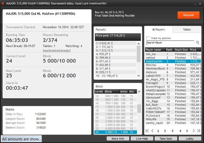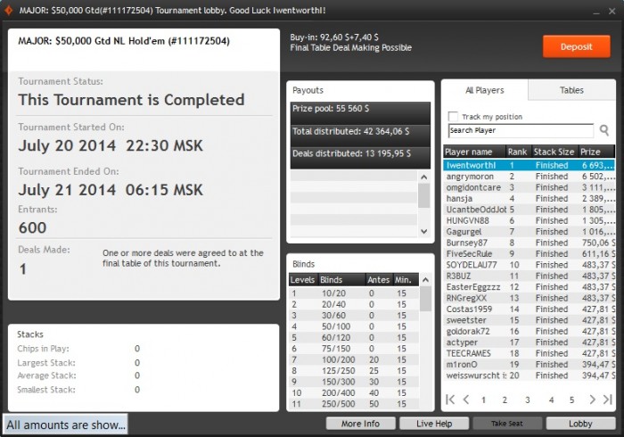 Poker Stars, $100 Buy-in (250/500 blinds, 60 ante) No Limit Hold'em Tournament, 9 Players Poker Tools Powered By Holdem Manager - The Ultimate Poker Software Suite.